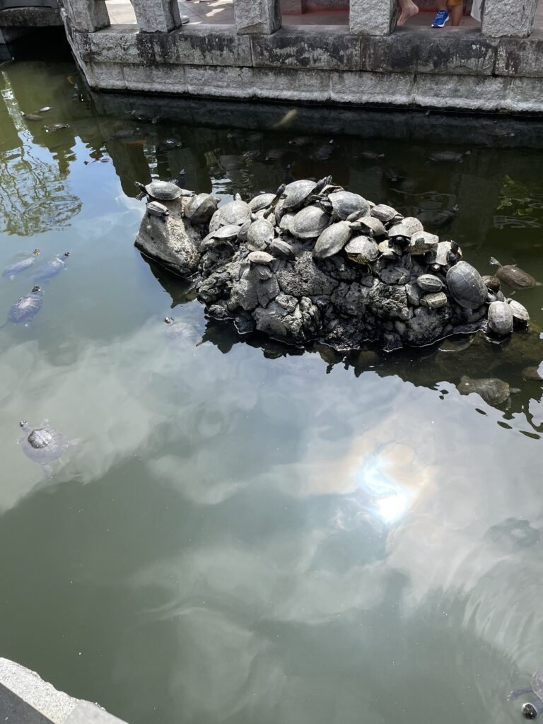 成田山新勝寺 弁財天堂 成田山新勝寺の表門の隣に 小さなお堂があります 看板を読んでみると 成田山で一番古い建築物と書いてあります 看板読むまでは 知らなかったです お堂の隣に 小さな池があります そこには 沢山の亀と 鯉は数匹見えます 岩で甲羅干...